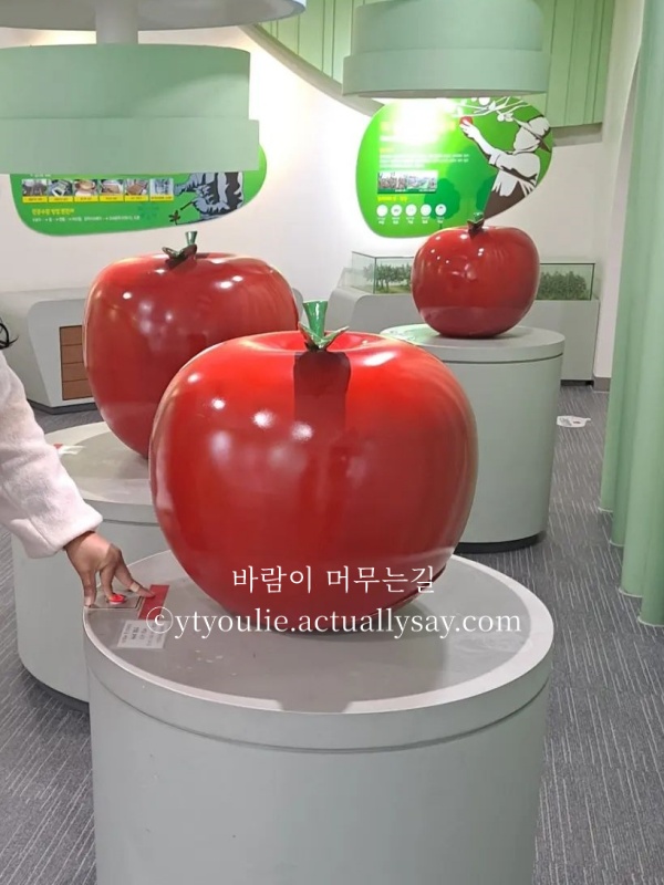 전시관 뒤편의 산책로에는 전 세계의 다양한 사과나무가 심어져 있어 탐스럽게 열린 열매들을 구경하는 재미도 쏠쏠해요. 갓 수확한 싱싱한 사과를 맛보거나 구매할 수도 있어서 여행 선물 준비하기에도 딱 좋더라고요. 거창의 자랑거리를 오감으로 느끼며 알찬 시간을 보낼 수 있는 거창 가볼만한곳 베스트 10의 보물 같은 공간이에요.