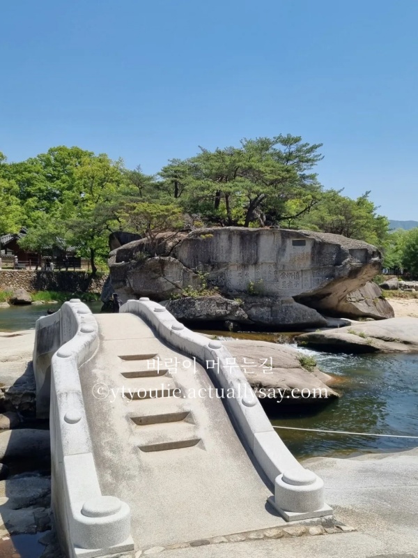 계곡 위를 가로지르는 240m 길이의 수승대 출렁다리 하늘 위를 걷는 기분까지 만끽할 수 있게 되었답니다. 다리 중간쯤 서서 바라보는 위천면의 평화로운 풍경은 사진기로 다 담기 힘들 정도로 근사하죠. 고즈넉한 옛 정취와 짜릿한 현대적 감성이 공존하는 이곳은 거창 가볼만한곳 베스트 10 리스트에서 빠질 수 없는 필수 코스예요.