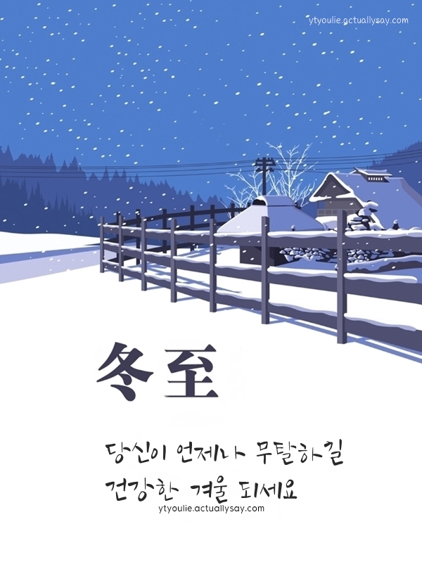 동짓날 밤이 깊어질수록 좋은 기운이 오래 머물기를 바랍니다. 하루하루 차가워지는 겨울 속에서도 동지의 따뜻한 의미를 떠올리며 무탈한 하루 보내시길 바랍니다. 올 한 해 애쓰신 만큼 다가오는 새해는 더 단단하고 밝은 날들이 기다리길 기원합니다.