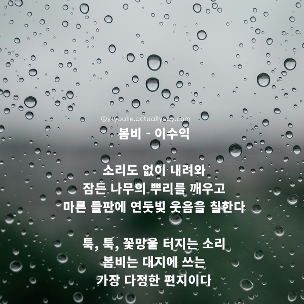 | 4월 시모음 4월의 시 벚꽃 시, 봄비 시모음 (0) | 2026.03.23 |